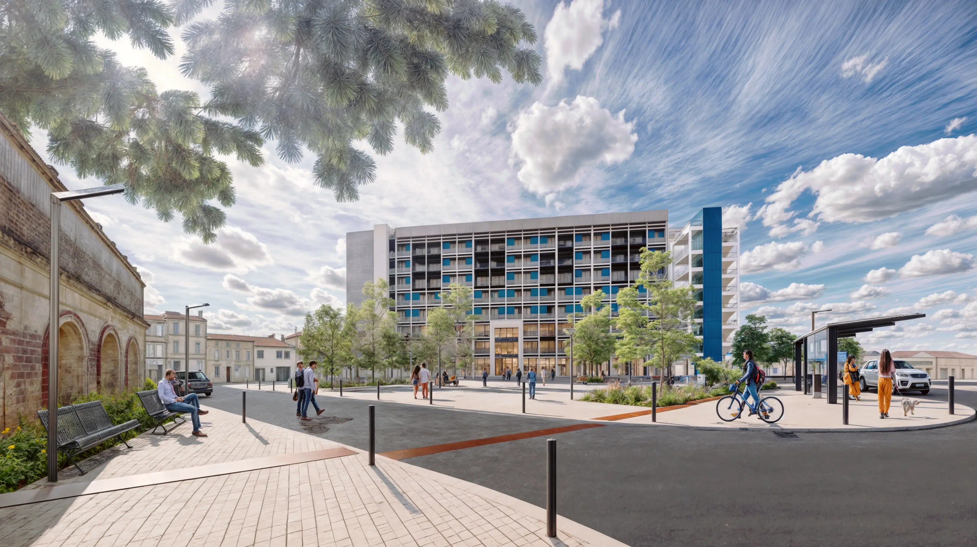 Inséré dans un site patrimonial remarquable du centre-ville de Rochefort, ce projet participe à la valorisation de l’ancien hôpital Saint-Charles tout en offrant un cadre de travail moderne, fonctionnel et évolutif, en cohérence avec l’image et les usages de la collectivité.