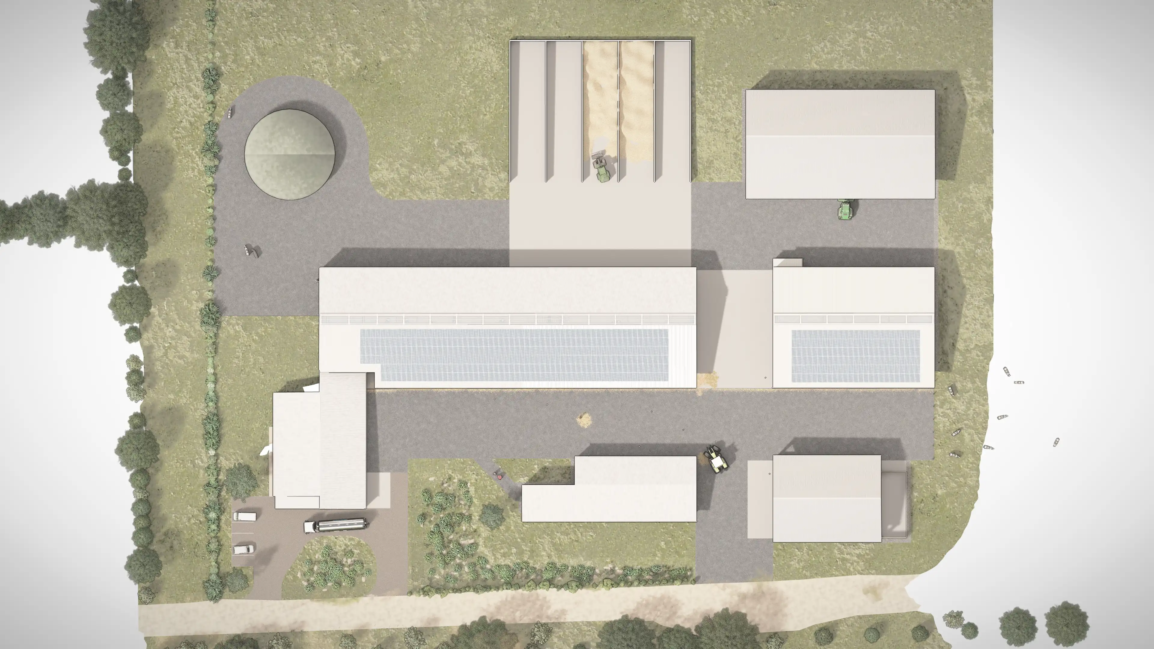 L’architecture privilégie le bien-être animal, la lumière naturelle et la ventilation naturelle, avec des bâtiments en structure bois et bardage ajouré assurant durabilité et intégration dans le paysage agricole. L’ensemble constitue une exploitation d’environ 5 000 m², pensée pour être évolutive et durable.