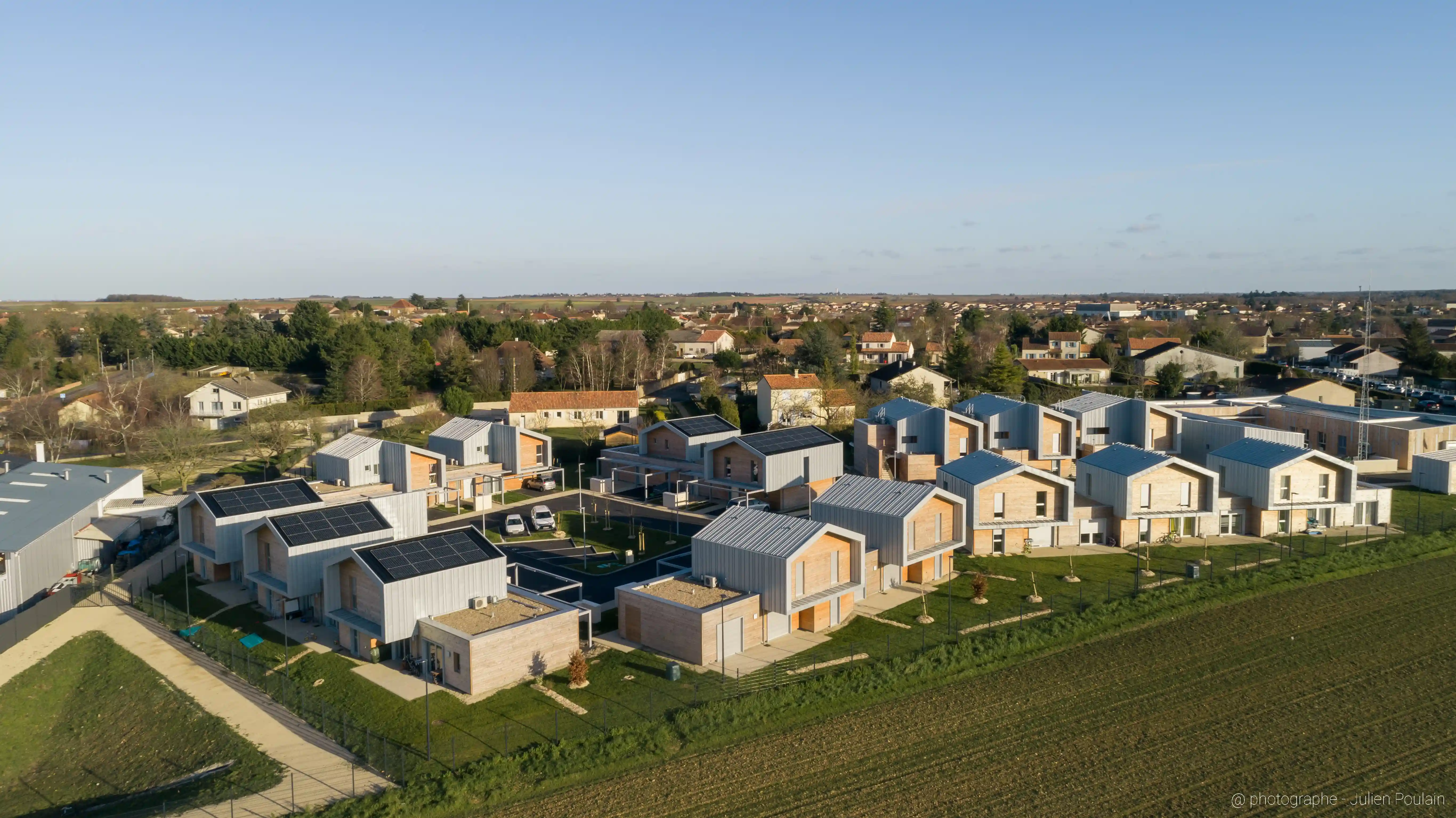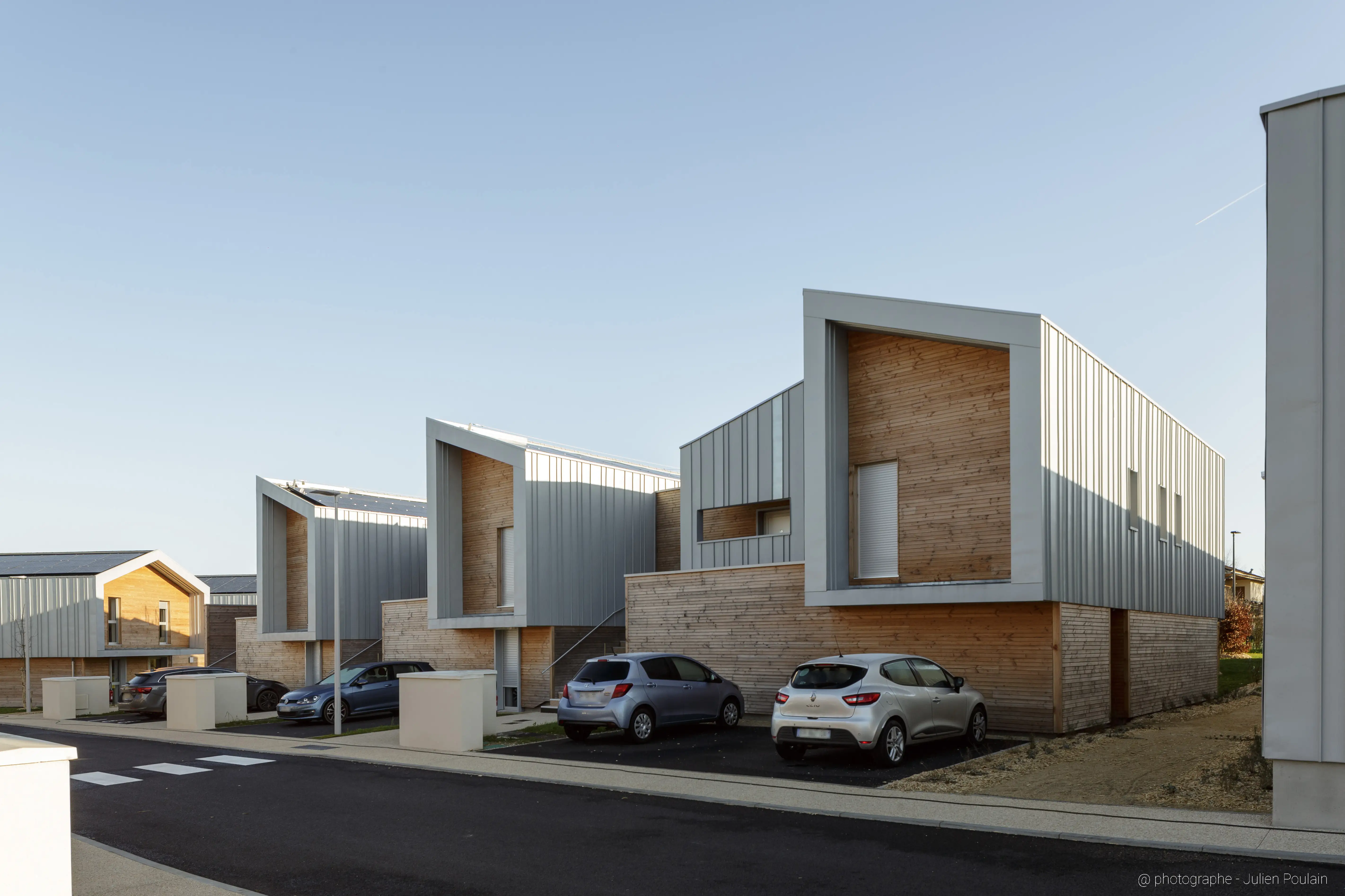 Les logements de fonction ont été conçus comme un ensemble harmonieux et aéré, favorisant le confort de vie des gendarmes et de leurs familles. La singularisation des volumes et des façades, associée à une conception simple et modulaire, permet une appropriation des espaces.