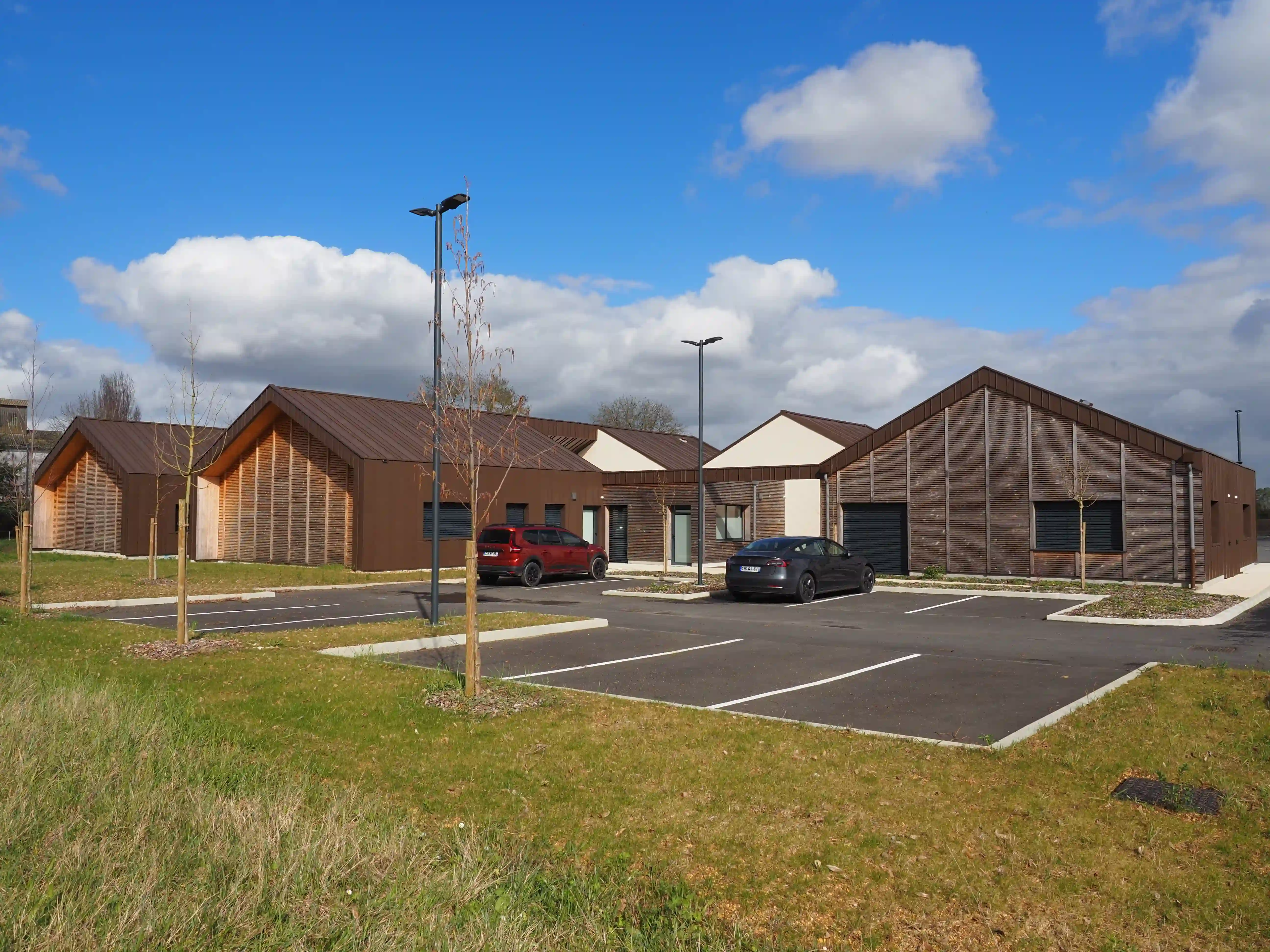 Implantée à l’entrée sud du bourg, la maison de santé de Savigné-sur-Lathan fait le lien entre zone urbaine et zone d’activité, en regroupant sur un même site une offre de soins diversifiée. Le projet se compose de deux ensembles bâtis à l’écriture architecturale commune, accueillant un pôle médical et paramédical, un pôle dentaire et un pôle optique, chacun disposant d’un accès clairement identifié.