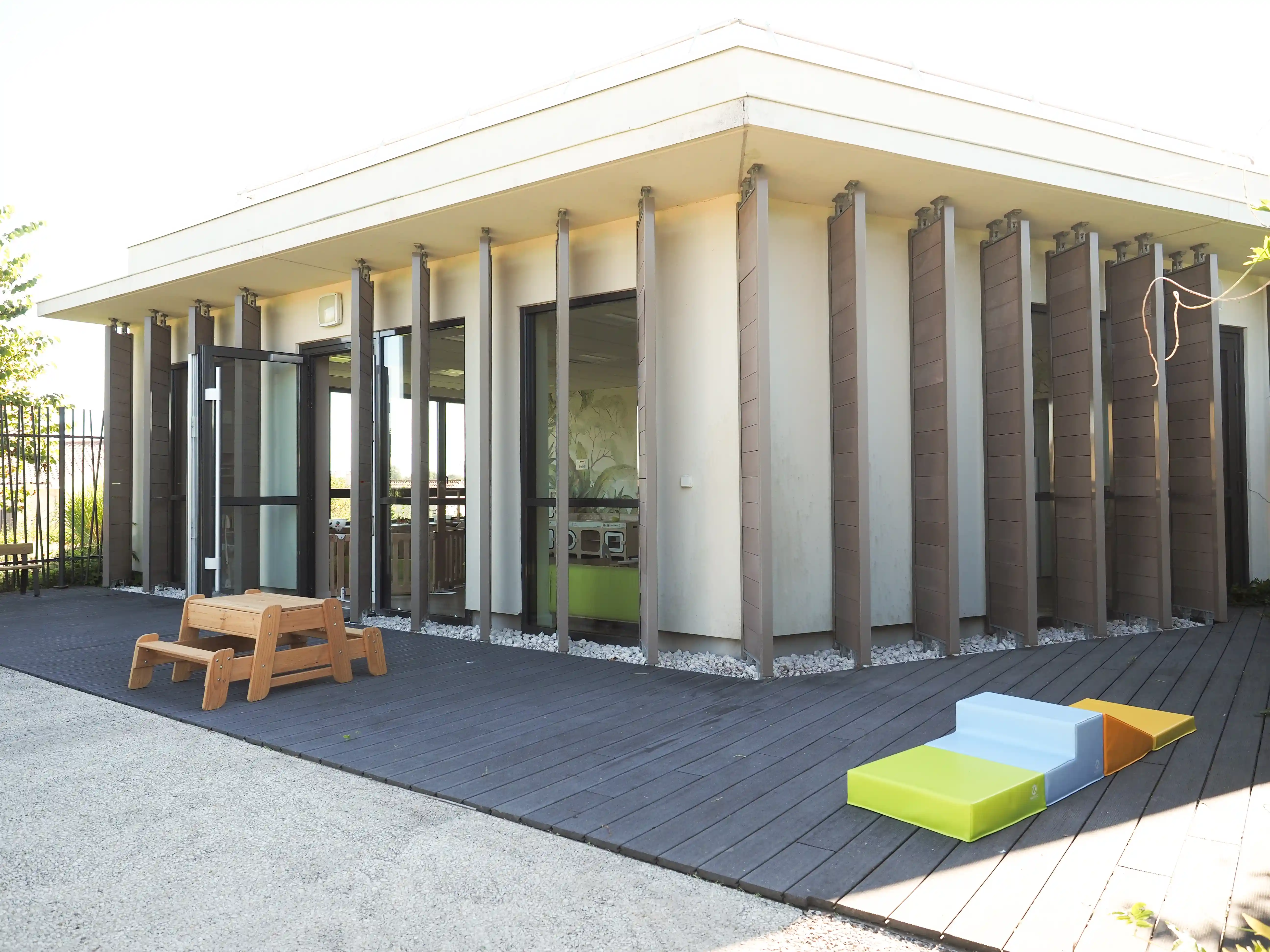 Ce lieu partagé permet aux enfants et aux résidents de se retrouver autour d’activités du quotidien : jeux, lectures, temps collectifs et projets communs, créant ainsi des moments de convivialité, de transmission et de lien social. L’implantation de la micro-crèche au sein même de l’établissement renforce les interactions naturelles et participe au bien-être de chacun.