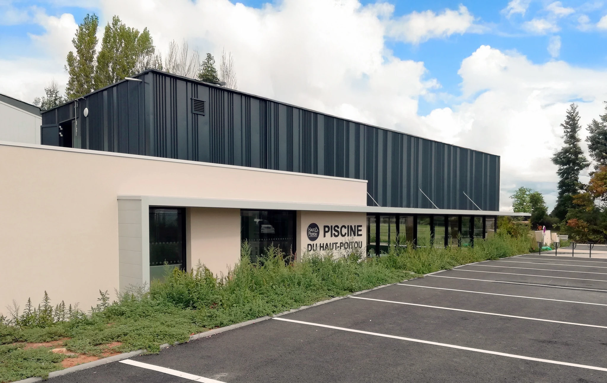 Implantée en sortie sud-est du bourg, la nouvelle piscine de Latillé remplace l’équipement existant et s’adosse au gymnase communal. Le projet s’inscrit dans un environnement résidentiel et paysager, à proximité du centre-bourg et des équipements publics.