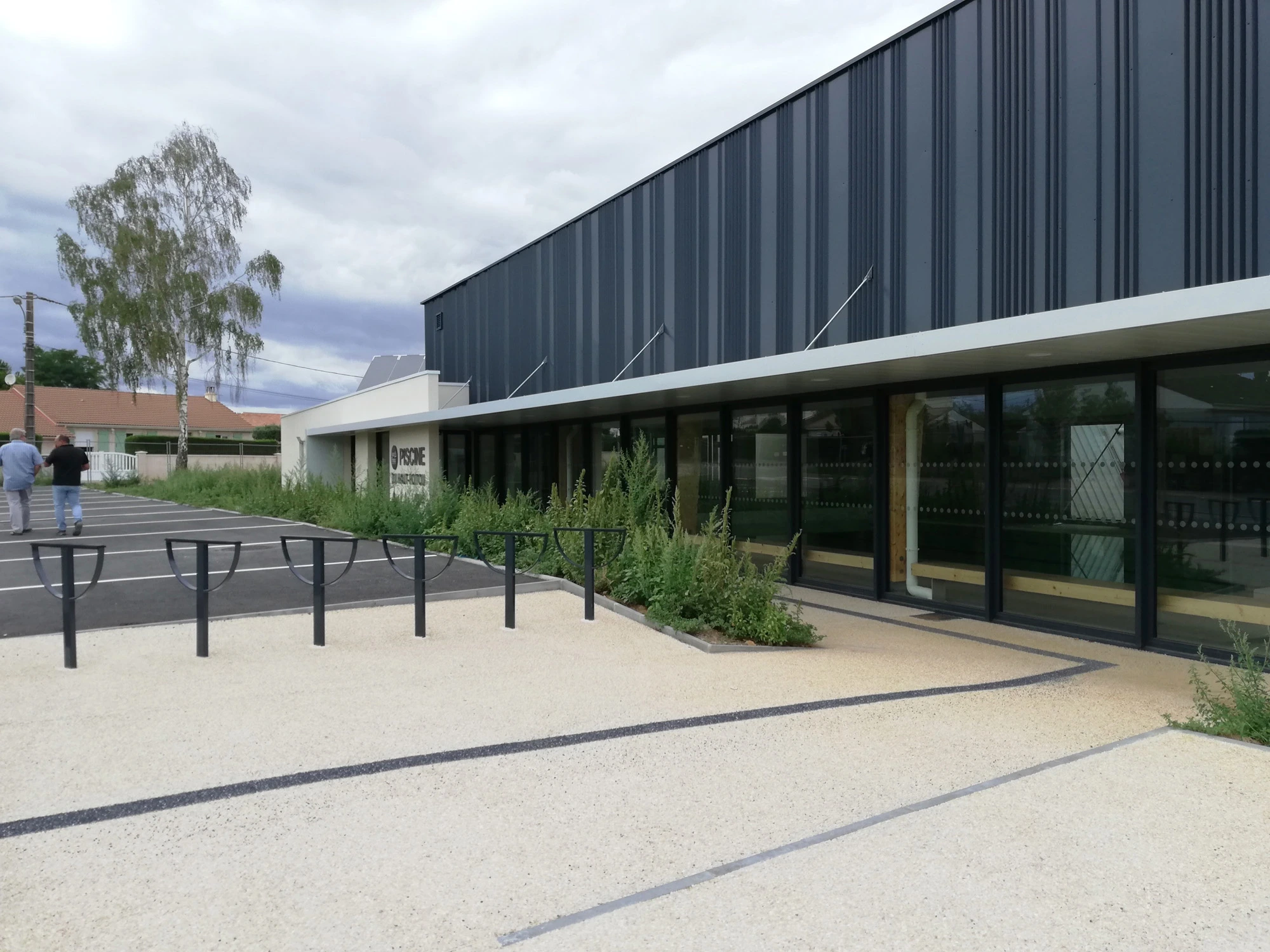 Les aménagements extérieurs valorisent le site par la création de parvis qualitatifs, de stationnements repensés et d’espaces végétalisés, tout en conservant au maximum les arbres existants. Le projet propose ainsi un équipement fonctionnel, lisible et intégré à son environnement.