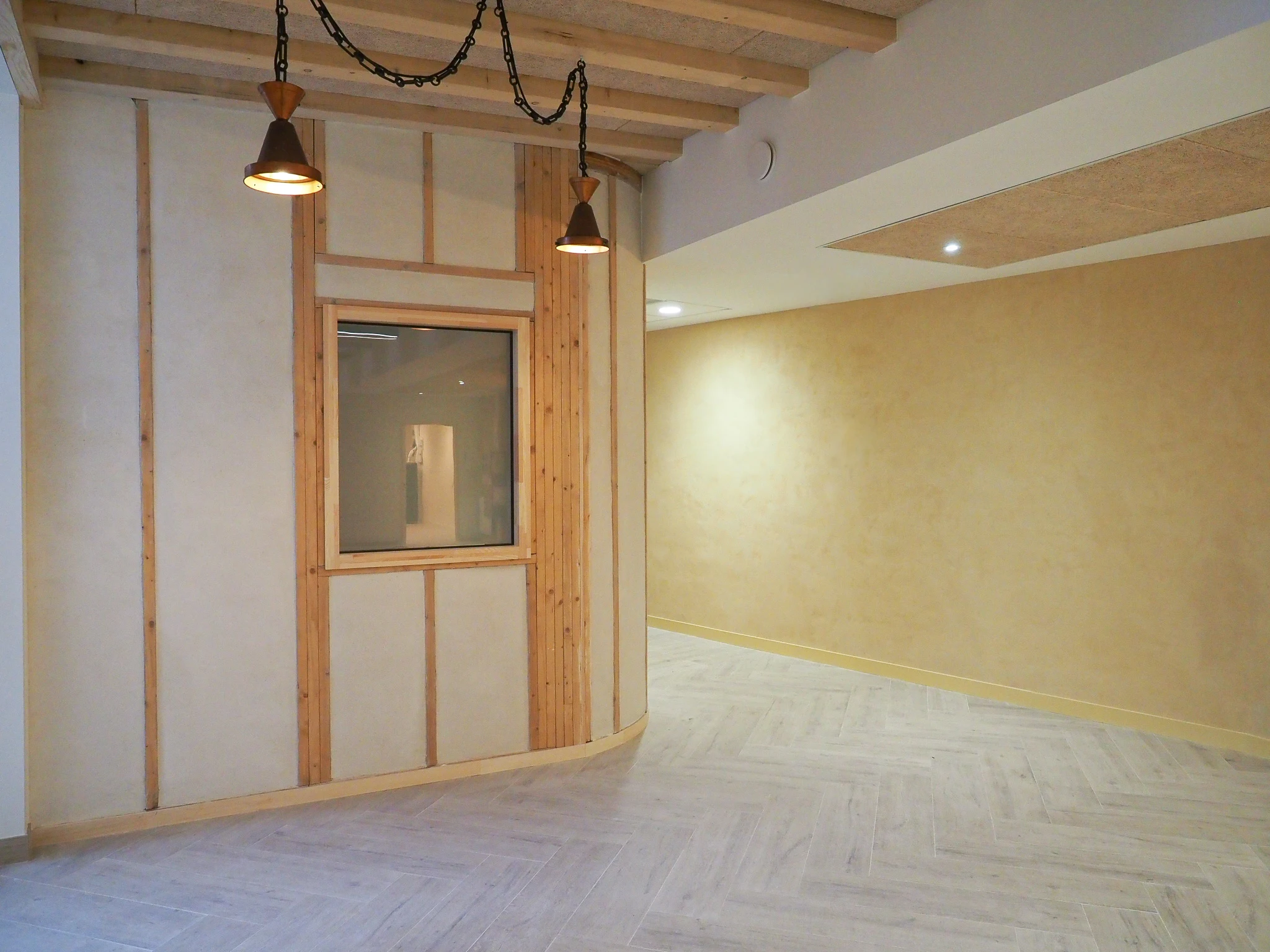 L’intervention comprend la réhabilitation des deux bâtiments existants et la création d’une extension contemporaine en rez-de-chaussée, reliant les entités aujourd’hui dissociées. Cette extension, en ossature bois et matériaux biosourcés, devient la nouvelle entrée principale, clairement identifiable et largement ouverte sur les cours.