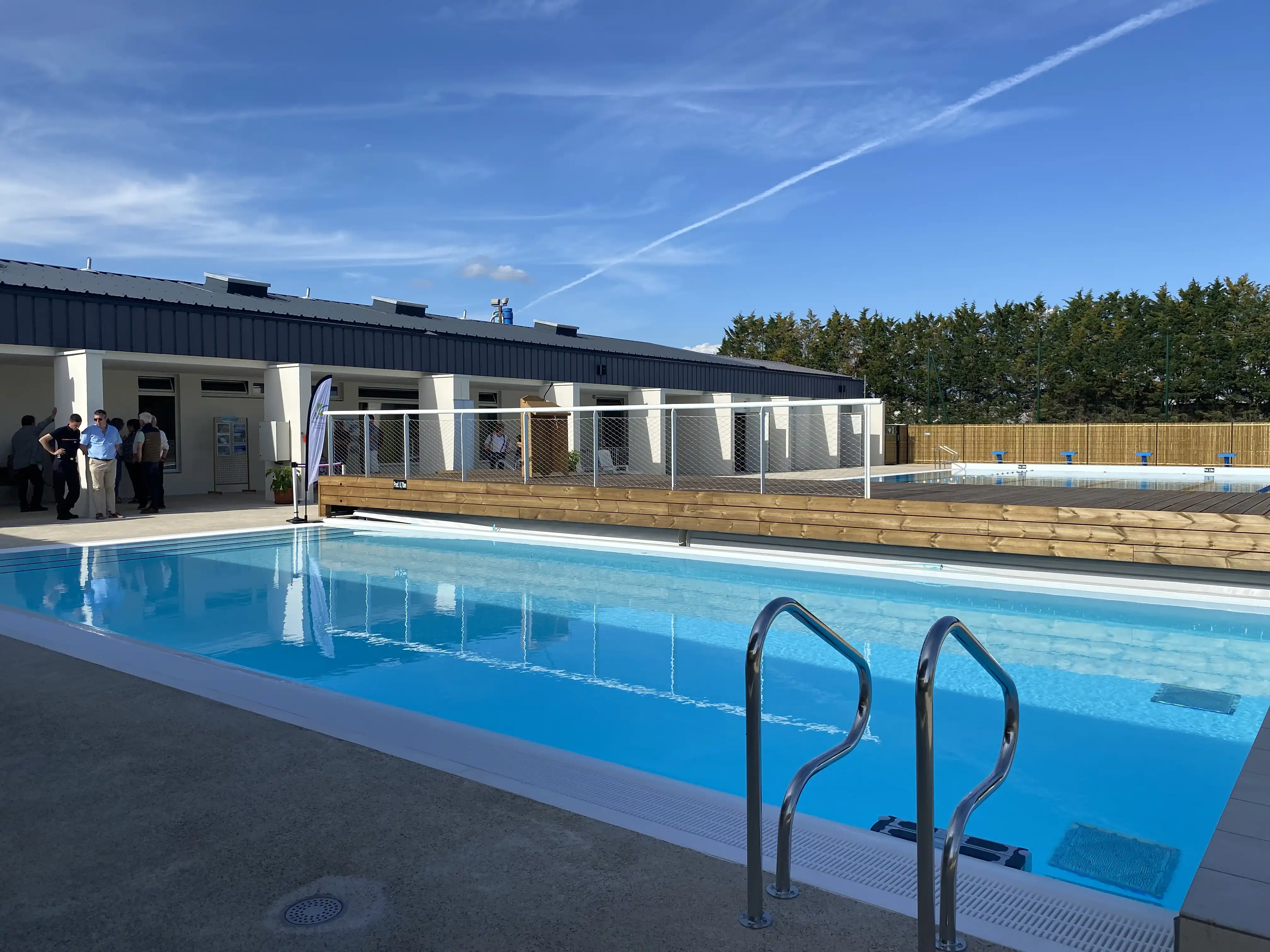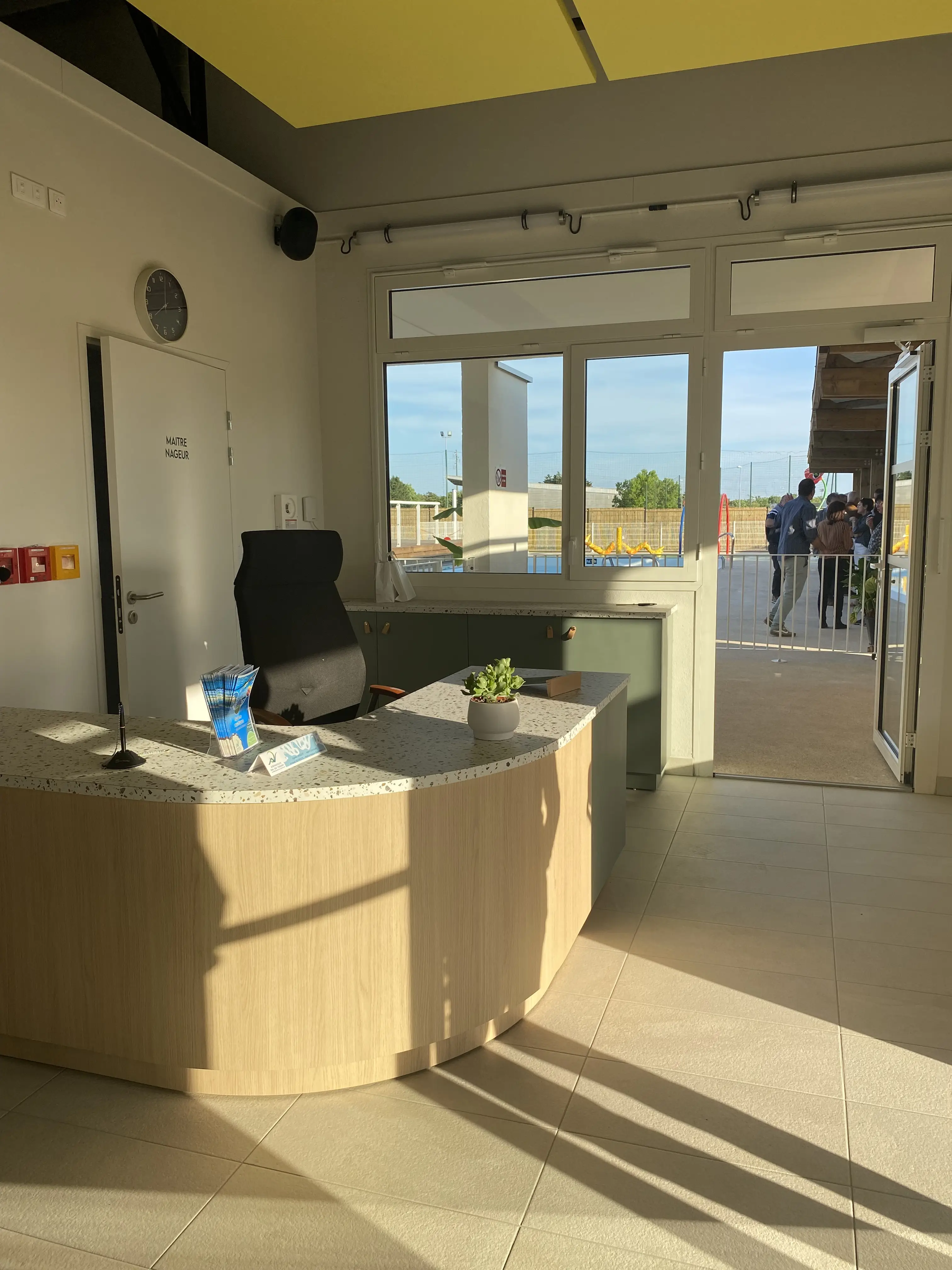 Le projet intègre également une plateforme aqualudique de type splashpad, ainsi qu’un large auvent bois côté Ouest, offrant confort et protection climatique en mi-saison comme en été. L’ensemble redonne une nouvelle attractivité à cet équipement structurant, au service du confort, de la sécurité et du plaisir des usagers.