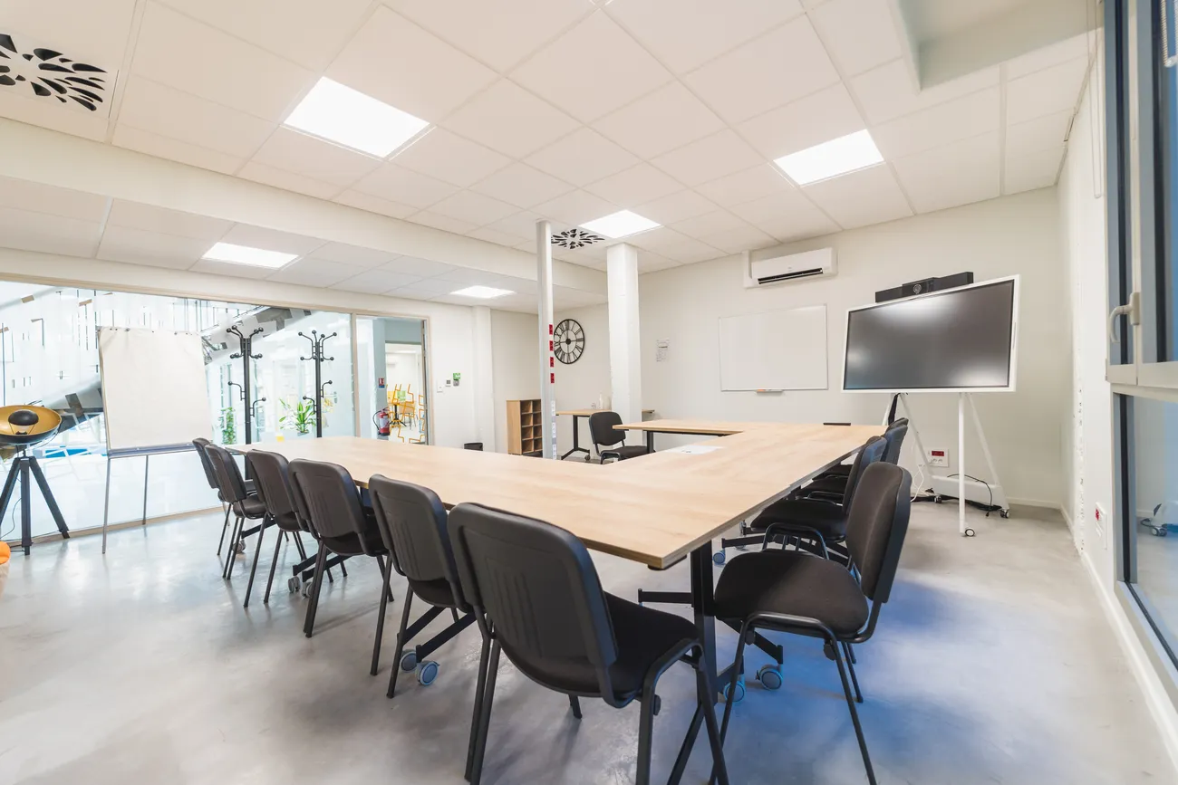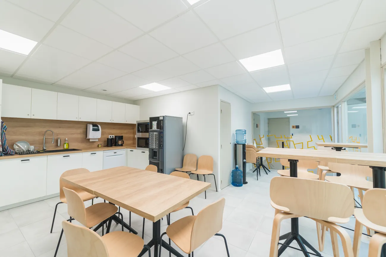 Le projet conserve la volumétrie existante du bâtiment tout en l’adaptant aux usages contemporains du travail. Les deux premiers niveaux accueillent les espaces de la Technopole : bureaux, salles de réunion, espaces de coworking, zones créatives et lieux de convivialité, organisés autour d’un hall central en double hauteur, largement éclairé par une verrière zénithale. Une loggia créée côté Boivre offre un espace de pause extérieur.