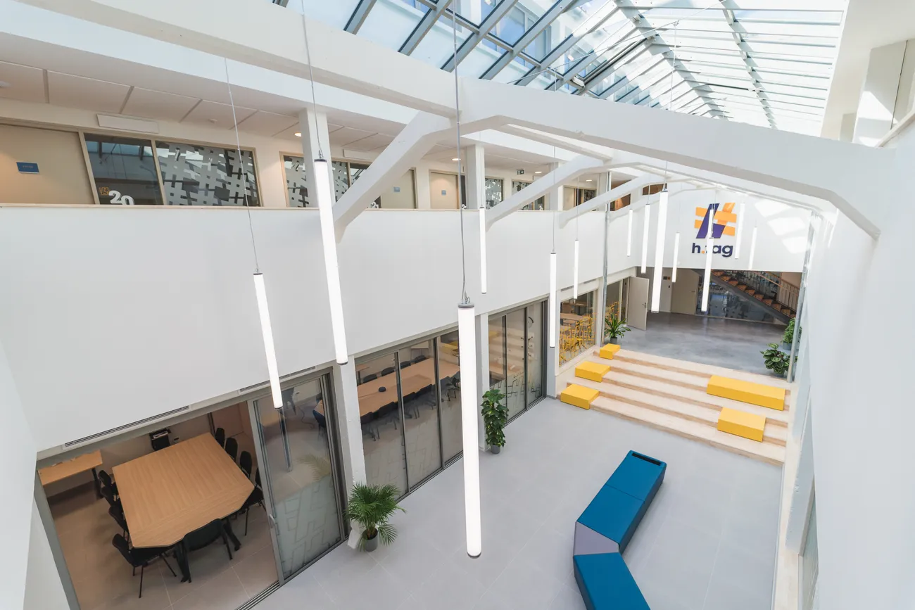 Ce projet participe à la requalification urbaine du site et à l’ancrage de la Technopole dans un bâtiment fonctionnel, lumineux et adaptable, tourné vers l’innovation et le paysage de la Boivre.
